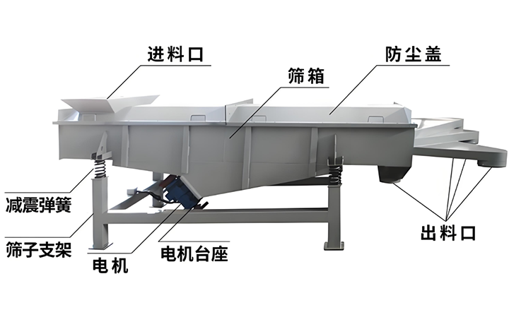 亮粉分级夜色直播APP盒子下载主要由筛箱、振动电机、筛网、减震装置、进料口、出料口及机架组成。筛箱为倾斜矩形,内部分层装 2-200 目筛网,实现多粒度分级;振动电机单侧或对称装于筛箱两侧,通过定向激振力驱动筛箱直线往复运动,让亮粉在筛面分散、透筛。减震装置用弹簧组件连接筛箱与机架,缓冲振动、降噪音;进料口设导流板防亮粉堆积,各层筛网下有独立出料口,排出不同粒度亮粉成品。
